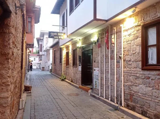 Het Grand Erken Hotel Antalya met 3 sterren biedt een bagageopslag en een restaurant aan en ligt in de Historisch Centrum Kaleici wijk van Antalya, op ongeveer 700 meter verwijderd van Gebroken Minaret en op 12 minuten wandelafstand van de Tekeli Mehmet Pasa-moskee. Hoogtepunten van dit hotel met 10 kamers zijn onder andere een valutawissel en een excursiebalie. Het biedt ook Wi-Fi in de hele accommodatie.